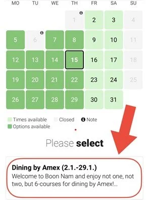 Book your table by choosing Dining by Amex (see picture below)